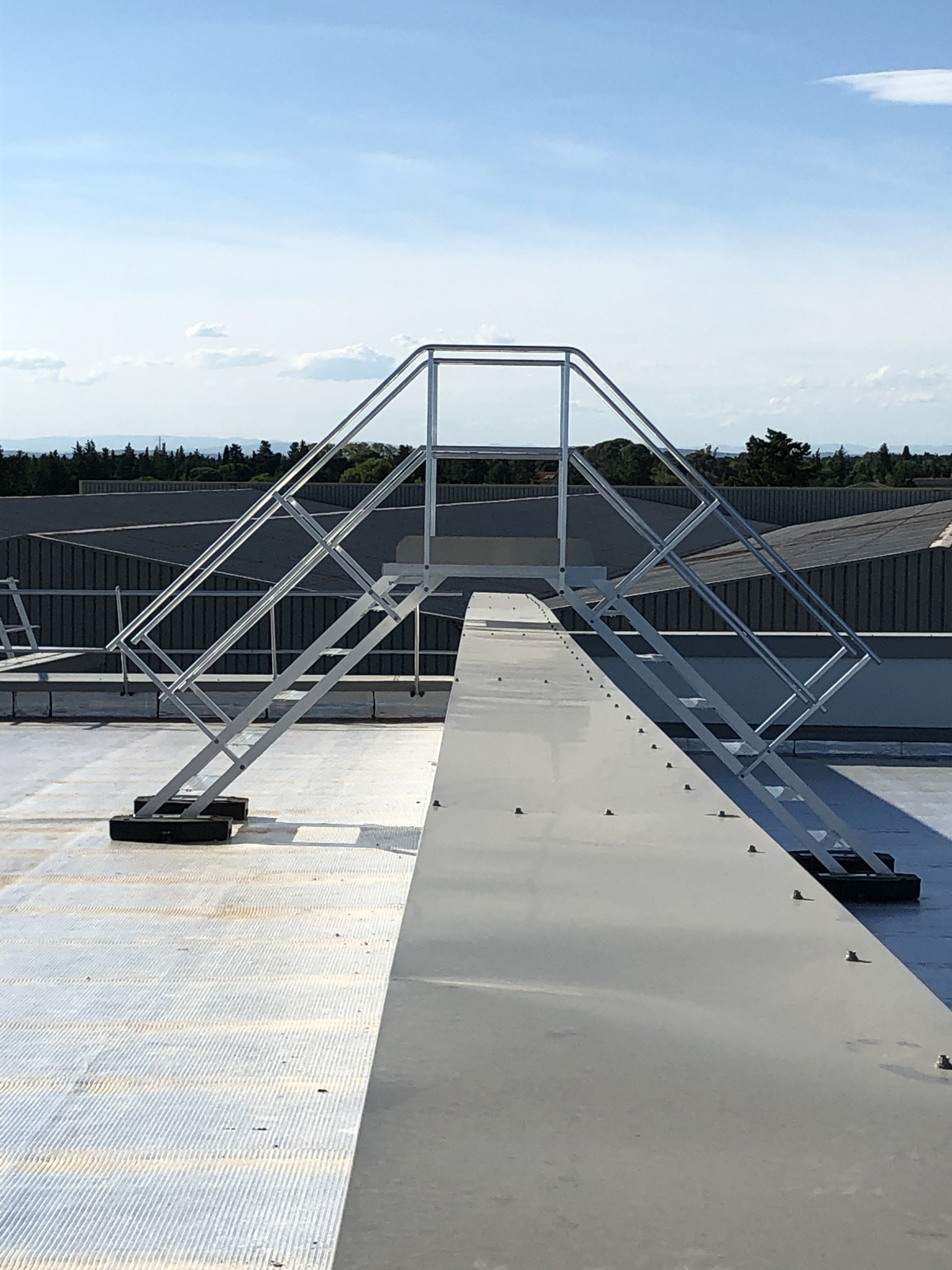Dispositif de type plateforme conçue pour permettre un passage sécurisé par-dessus divers obstacles tels que des conduits, des murs de parapet, des canalisations, des équipements d’usine ou tout autre obstacle.
